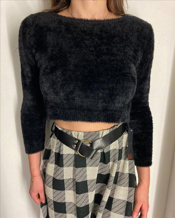 maglioncino corto, morbidissimo, colore nero e scollo a barca, taglia unica