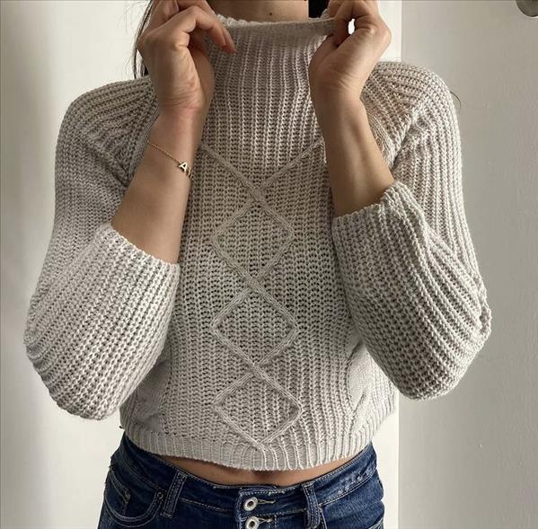 Dolcevita corto, collo medio, intrecciato color avorio; taglia unica