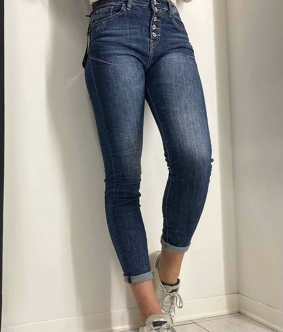 Jeans vita alta con bottoni, elasticizzati, alta vestibilitá; taglia XS/38